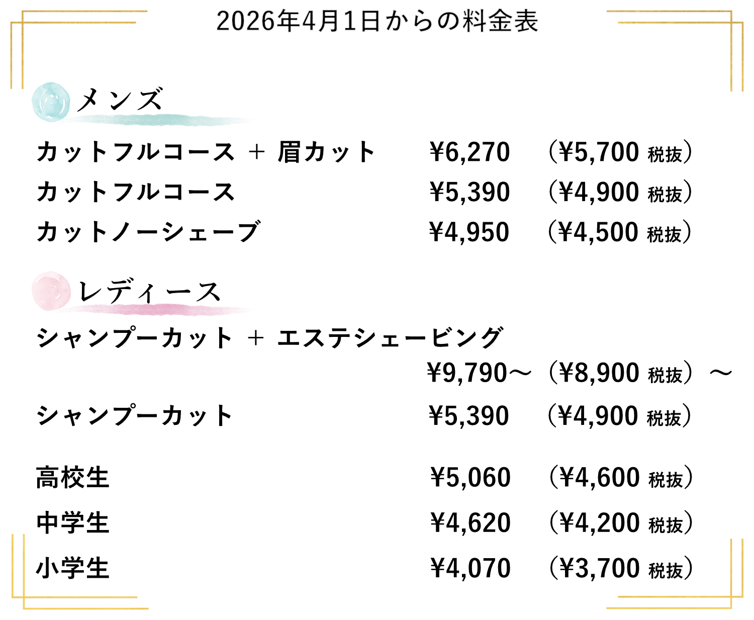 カットメニュー: +220円 ~ 440円